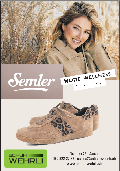 Wer Einlagen tragen muss, kennt das Problem. Man sieht tolle Schuhe, die jedoch nicht passen, weil sie nicht mit den eigenen Schuheinlagen bestückt werden können. Nicht so bei den Modellen von Schuh Wehrli, wo über 60 Prozent der modischen oder klassischen Schuhe mit Einlagen versehen werden kön en – entweder mit eigenen Einlagen vom Orthopäden oder mit genormten Einlagen von Schuh Wehrli. Zudem sind einige Modelle mit grosser Weite verfügbar, was für einen zusätzlichen Tragekomfort sorgt. Am besten schaut man gleich persönlich im Fachgeschäft vorbei und lässt sich von den neuen Herbst- und Winterkollektionen inspirieren. Vom Halbschuh bis zu den gefütterten Winterboots ist bereits das meiste eingetroffen. Im Trend sind etwa Retro-Sohlen und Modelle im Teddy-Look. Farblich sind Bordeaux und Brauntöne ein Musthave. Aber auch Blau, Beige und natürlich Schwarz sind vertreten. Ein Renner sind wiederum Tierprints, etwa im Schlangen- oder Leoparden-Look. In der neuen Saison sind nebst Stiefeletten auch Stiefel mit Hochschaft in, die gerne zu Jupes und Kleidern getragen werden. Bei den Damen sind Grössen von 35 bis 43 und bei den Herren von 39 bis 47 im Sortiment. Die Auswahl bei den Herrenmodellen ist ebenfalls enorm und deckt auch hier vom Halbschuh bis zu den gefütterten Winterboots alles ab. Bei den Herrenmodellen geben Brauntöne den Ton an, gefolgt von Schwarz und Blau.