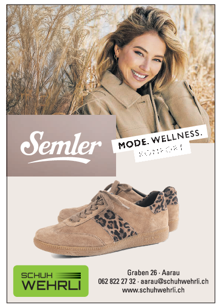 Wer Einlagen tragen muss, kennt das Problem. Man sieht tolle Schuhe, die jedoch nicht passen, weil sie nicht mit den eigenen Schuheinlagen bestückt werden können. Nicht so bei den Modellen von Schuh Wehrli, wo über 60 Prozent der modischen oder klassischen Schuhe mit Einlagen versehen werden können – entweder mit eigenen Einlagen vom Orthopäden oder mit genormten Einlagen von Schuh Wehrli. Zudem sind einige Modelle mit grosser Weite verfügbar, was für einen zusätzlichen Tragekomfort sorgt. Am besten schaut man gleich persönlich im Fachgeschäft vorbei und lässt sich von den neuen Herbst- und Winterkollektionen inspirieren. Vom Halbschuh bis zu den gefütterten Winterboots ist bereits das meiste eingetroffen. Im Trend sind etwa Retro-Sohlen und Modelle im Teddy-Look. Farblich sind Bordeaux und Brauntöne ein Musthave. Aber auch Blau, Beige und natürlich Schwarz sind vertreten. Ein Renner sind wiederum Tierprints, etwa im Schlangen- oder Leoparden-Look. In der neuen Saison sind nebst Stiefeletten auch Stiefel mit Hochschaft in, die gerne zu Jupes und Kleidern getragen werden. Bei den Damen sind Grössen von 35 bis 43 und bei den Herren von 39 bis 47 im Sortiment. Die Auswahl bei den Herrenmodellen ist ebenfalls enorm und deckt auch hier vom Halbschuh bis zu den gefütterten Winterboots alles ab. Bei den Herrenmodellen geben Brauntöne den Ton an, gefolgt von Schwarz und Blau.